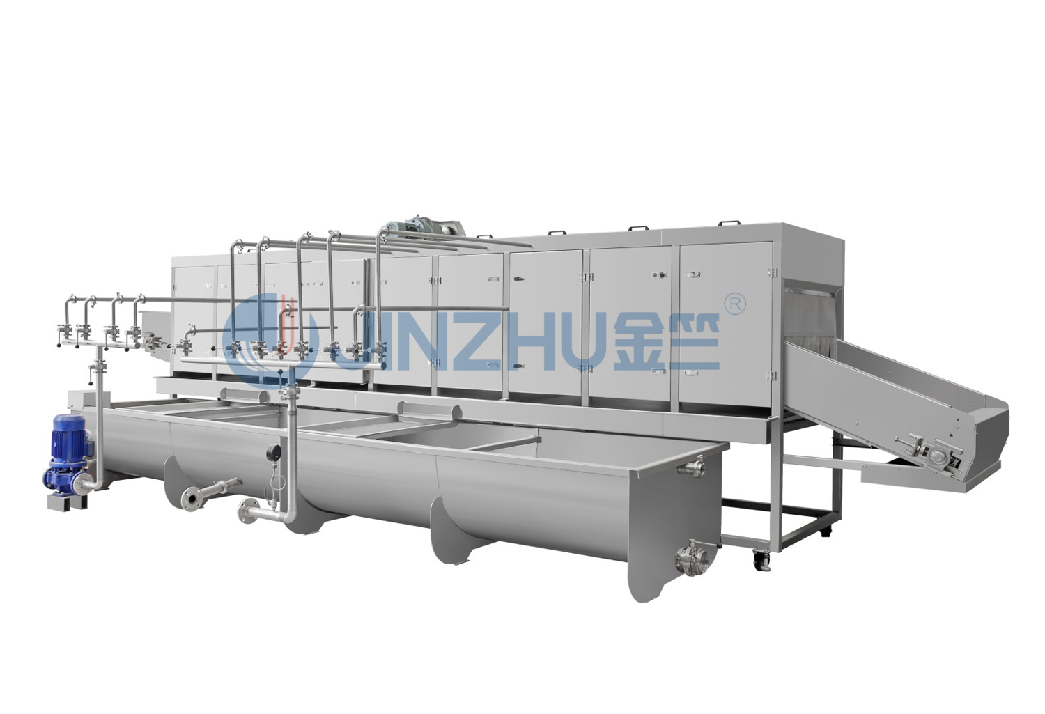 喷射式清洗机(预洗段)主要用板于中药材前处理根茎类药材清洗作业,通过不锈钢板链输送带,将要清洗的物料通过喷射清洗箱体內进行清洗。